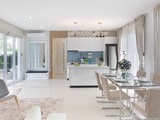 One-storey house with the roof terrace 4-bedrooms, 4-bathrooms, living room, kitchen, garage, garden, the pool area 32sqm. and parking area 16.5 sqm.
