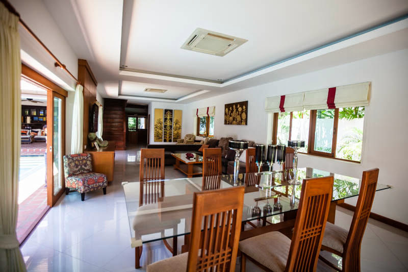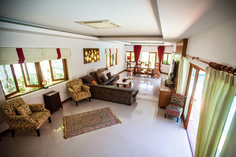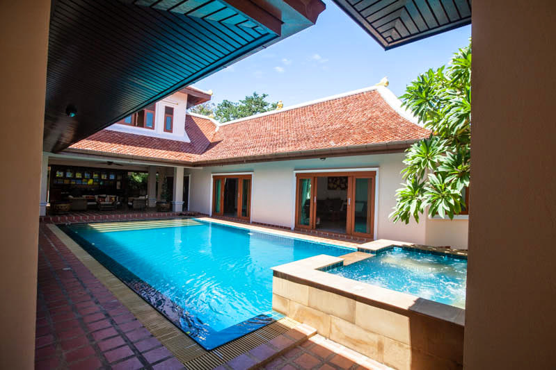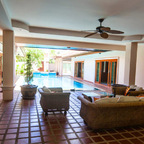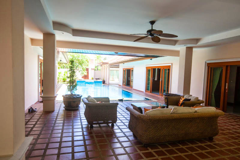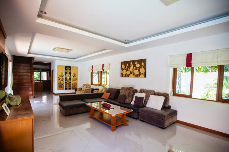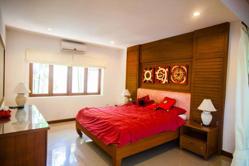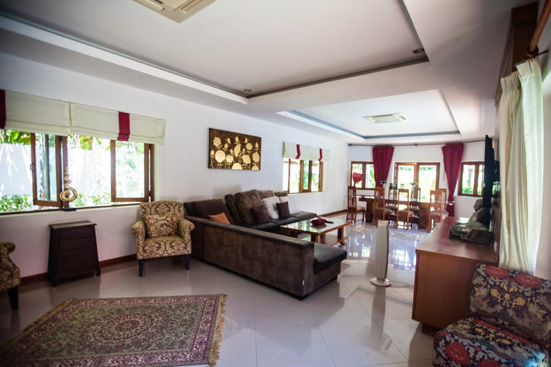 This spacious 4 bedroom house and 1 maid room is now available for sale and is offered fully furnished and air conditioned, the house benefits from a fully fitted European style kitchen and western bathrooms all decorated to a high standard with modern fittings and fixtures throughout. The house is complete with its own private swimming pool and gardens offering plenty of outside space. Available to buy now at under 30 million baht this house is held in a company name. Chak Nok area is a very popular place to live with its beautiful country side views, and close location to Jomtien beach and Siam Country club. Huay Yai road, Phoenix Golf Club, South Pattaya Ban Amphur and surrounding areas are only a few minutes drive away. Local shops, 7 eleven stores including Makro and a Tesco are easily accessible.