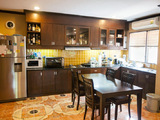Роскошная Бали вилла с 3 спальнями и 2 ванными находится с тихом приличном месте с удобным заездом с шоссе Сукхумвит. Пару лет назад был сделал качественный дорогой ремонт и установлена новая техника и мебель. В доме: европейская кухня со всех бытовой техникой, 2 гостевых зоны в гостинной, 5 кондиционеров, стиральная машина, холодильник, микроволновка, вся мебель новая. Панорамные большие окна с видом на сад, делают дом очень светлым. Во дворе: небольшая ухоженный сад, беседка, прудик с рыбами, крытая парковка на 2 авто, качели и типичная для стиля Бали арка над входом. Дом содержит все необходимое для переезда, вплоть до посуды и белья. как преимущество, все провода в поселке спрятаны под землю и ничего не портит вид. Так же к услугам жильцов Клуб Хаус, круглосуточная охрана и общий бассейн.